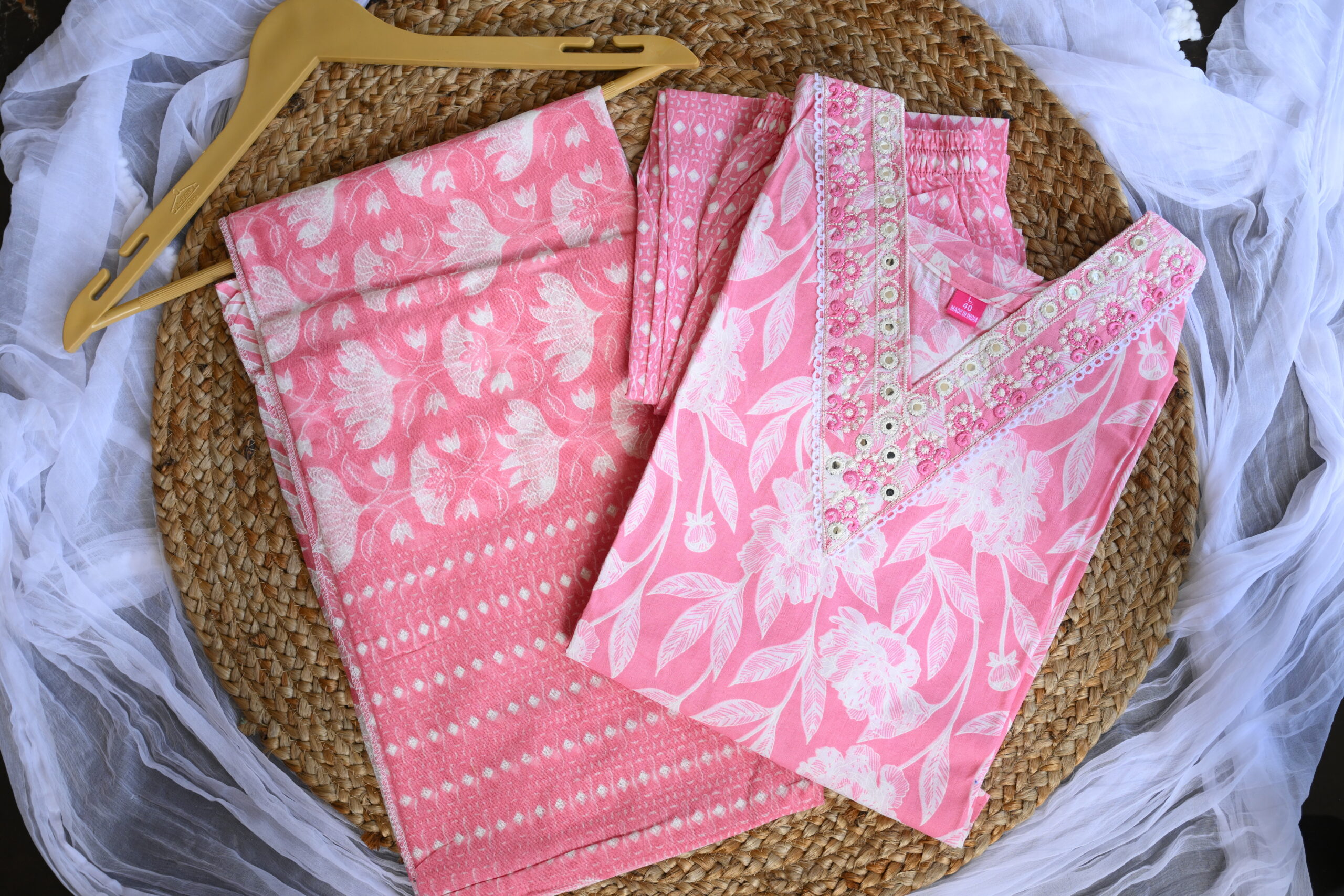 Step out in style with this elegant cotton churidar. Designed with intricate ethnic prints,