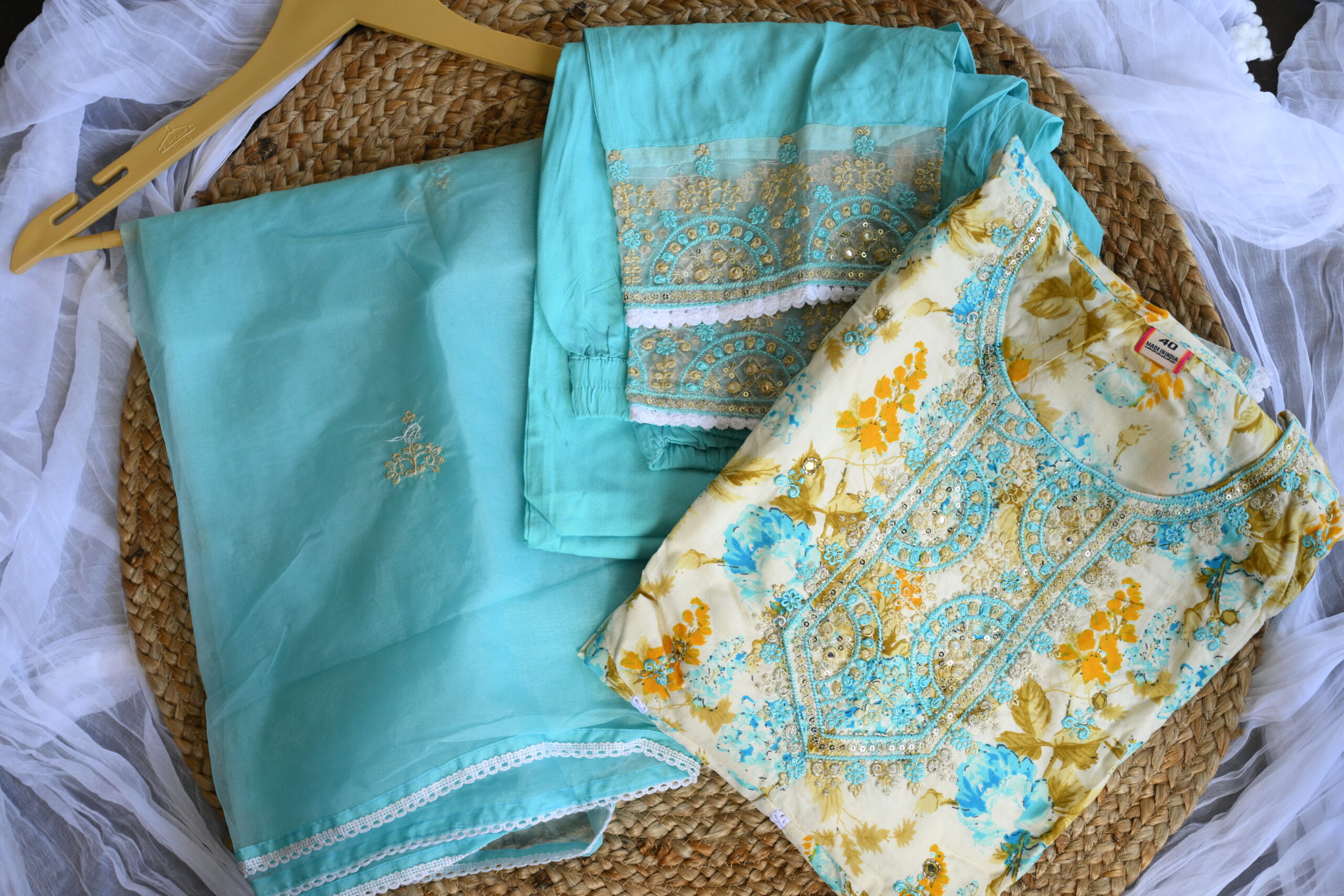 Step out in style with this elegant cotton churidar. Designed with intricate ethnic prints,
