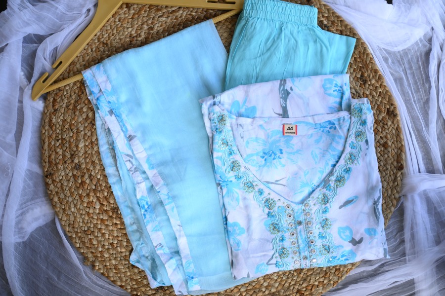 Step out in style with this elegant cotton churidar. Designed with intricate ethnic prints,